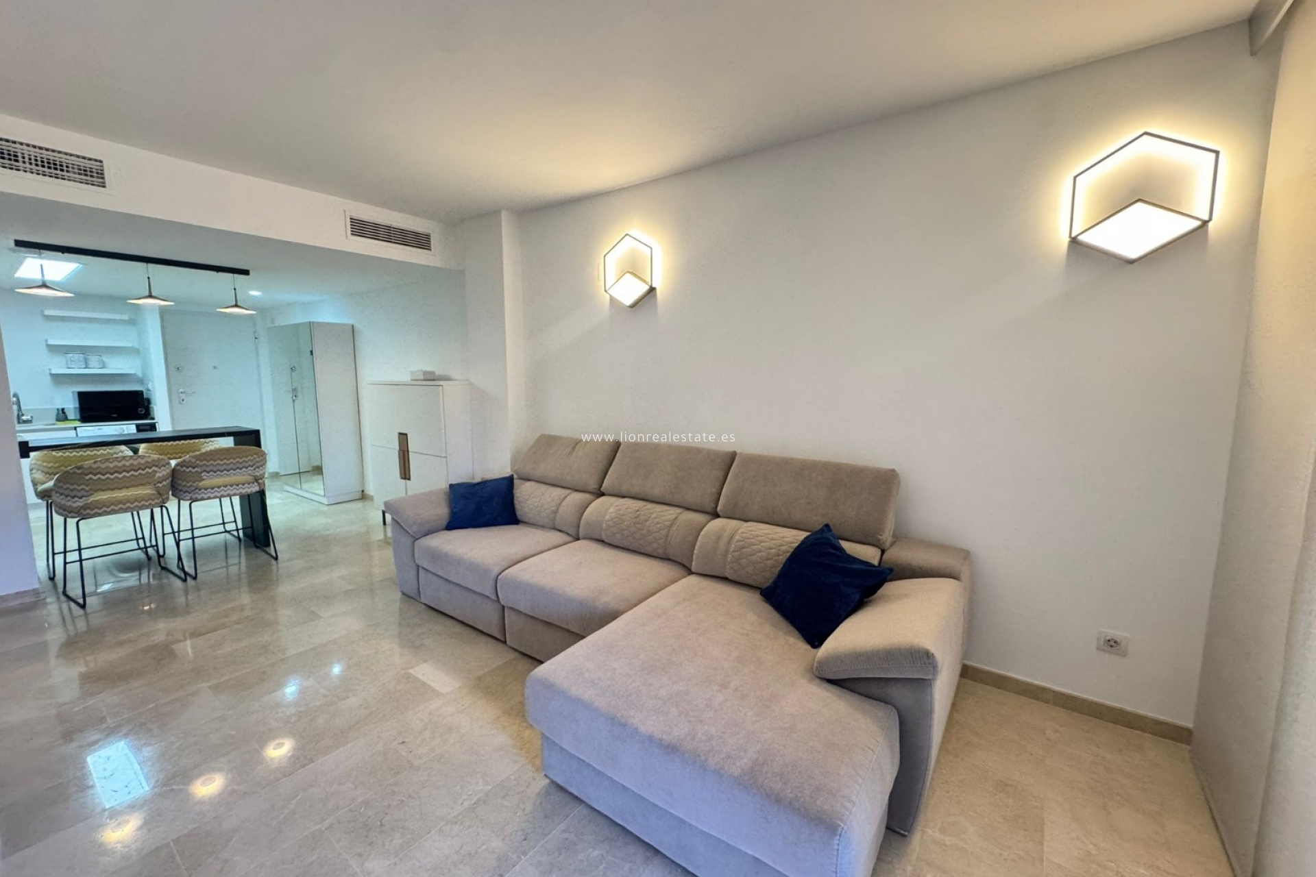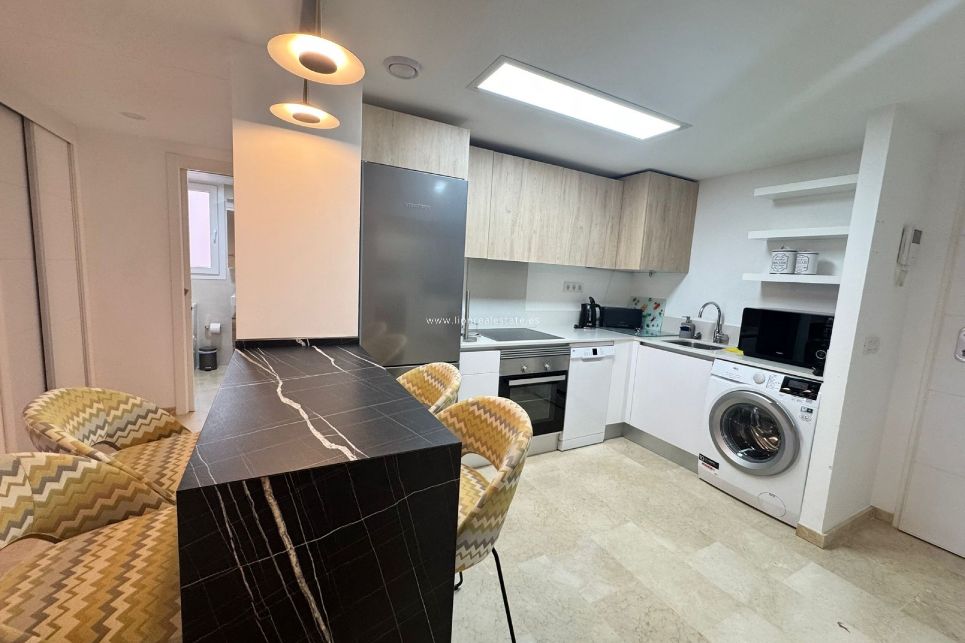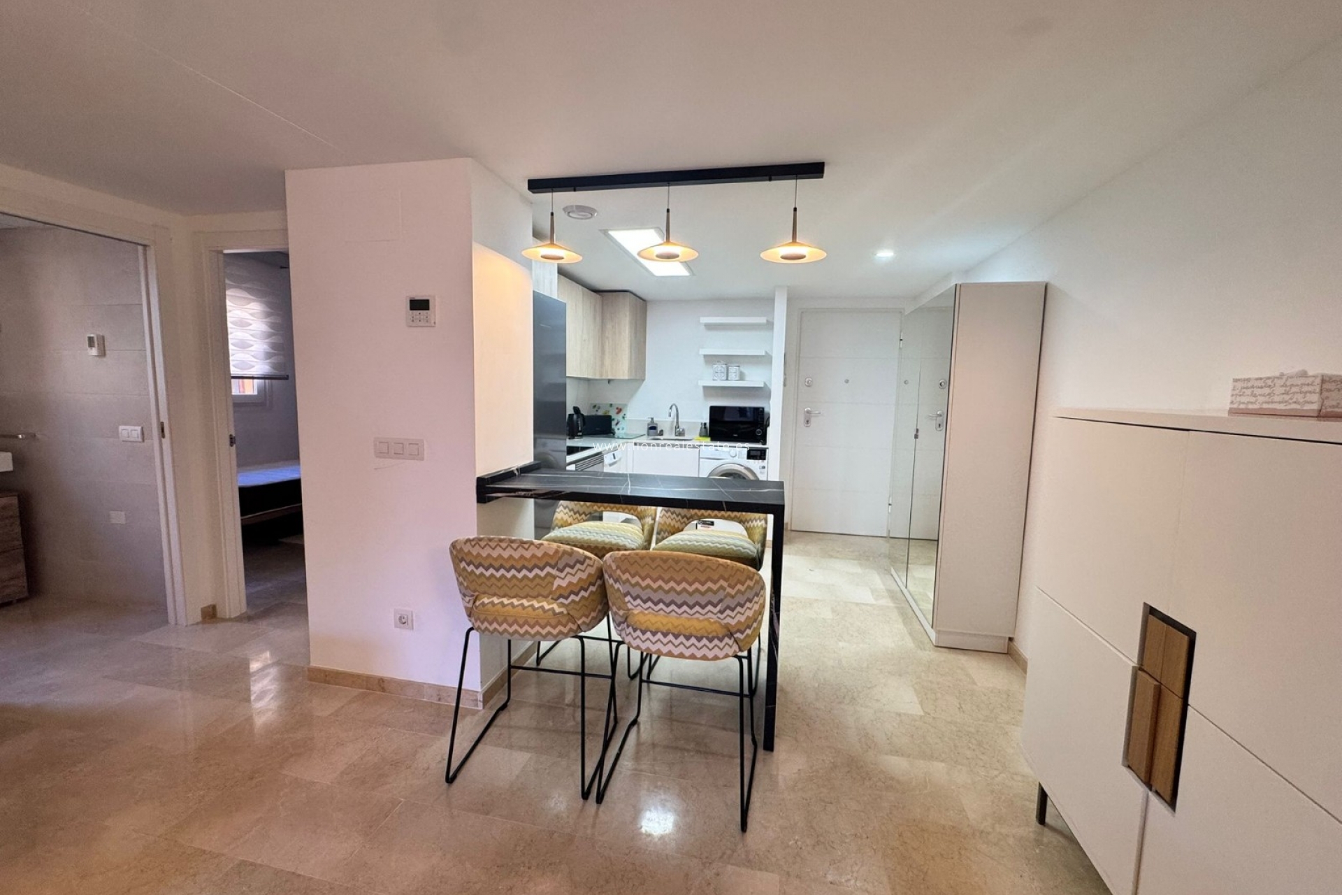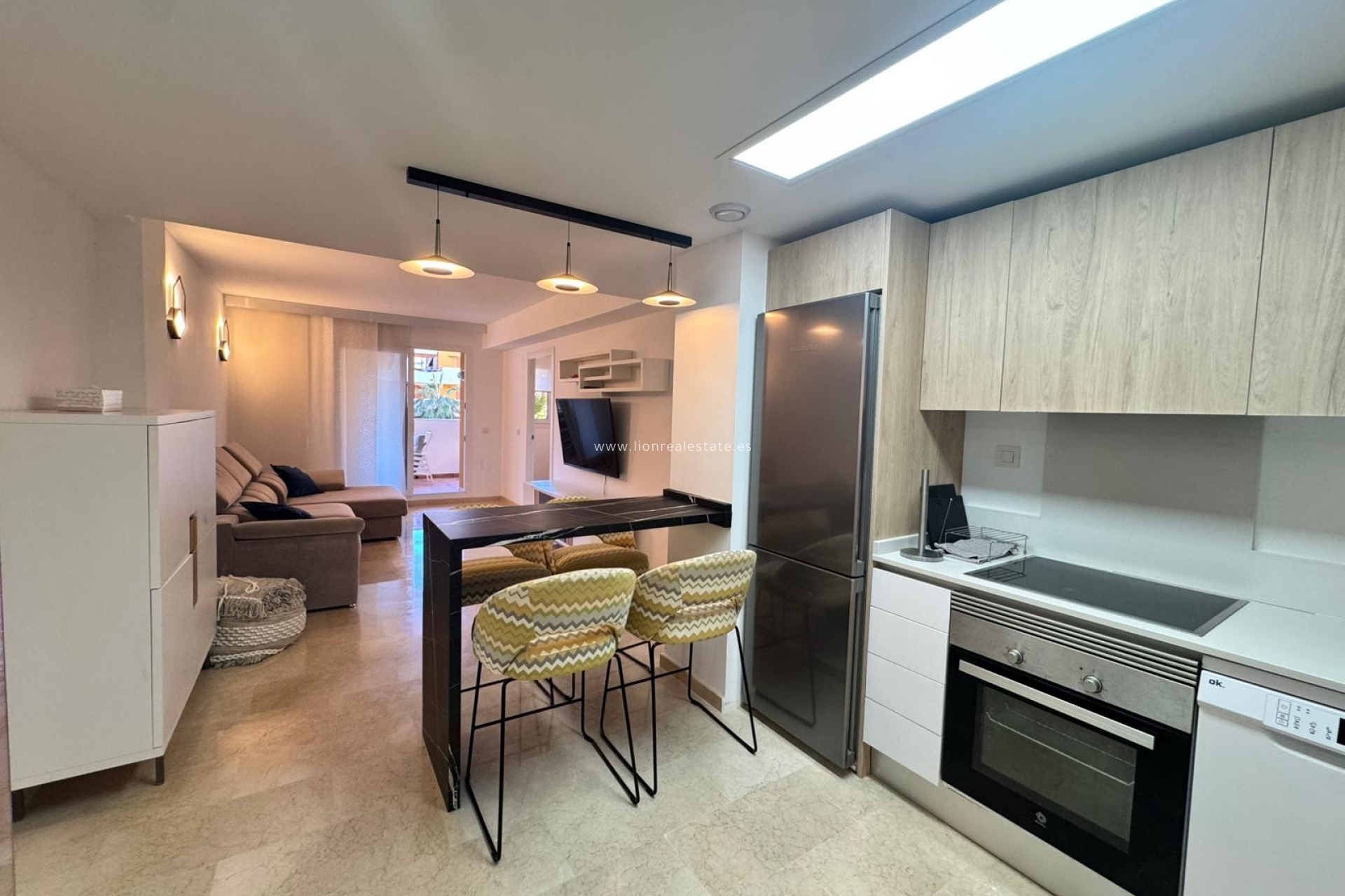 Se alquila un acogedor y luminoso apartamento de dos dormitorios para larga temporada en la prestigiosa zona de La Recoleta, Punta Prima. Es el lugar perfecto para vivir cómodamente cerca del mar: la playa está a solo 200 metros, y a poca distancia encontrarás restaurantes, tiendas y un hermoso paseo marítimo. El apartamento está completamente equipado con electrodomésticos modernos y muebles de calidad, lo que permite instalarse sin necesidad de gastos adicionales. El amplio balcón ofrece una vista agradable a las zonas verdes del complejo, y las habitaciones luminosas crean un ambiente de tranquilidad y confort.