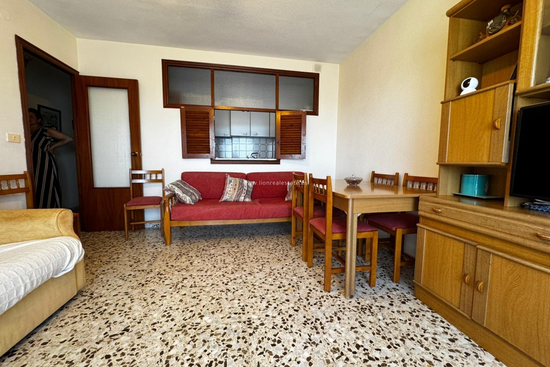 El apartamento cuenta con tres dormitorios espaciosos, dos baños completos, cocina independiente y un salón luminoso con acceso a una terraza con vistas al mar y a zonas ajardinadas con palmeras. Se vende completamente amueblado y listo para entrar a vivir, ideal tanto como vivienda habitual, casa de vacaciones o inversión para alquiler.