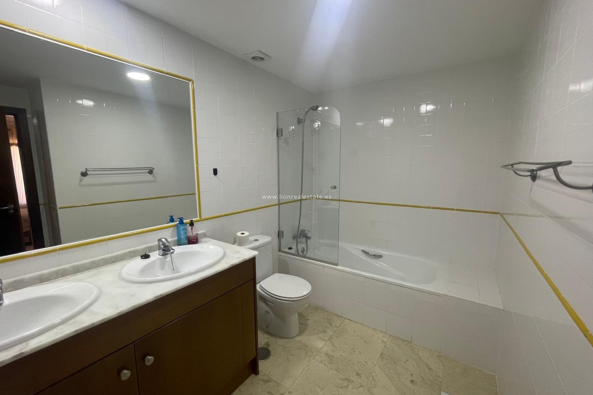 El dormitorio principal dispone de baño en suite, mientras que el segundo dormitorio tiene acceso a un baño adicional con ducha. La vivienda cuenta con acabados de alta calidad, armarios empotrados y aire acondicionado.