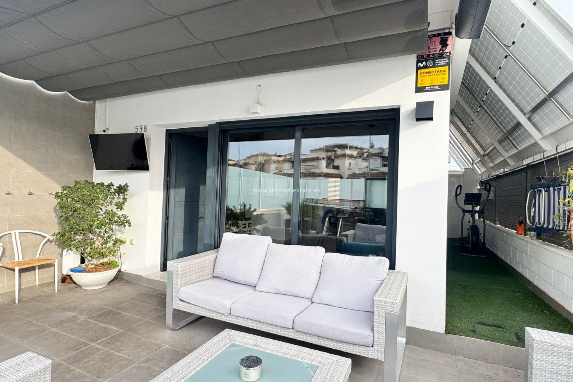 ~La vivienda se vende totalmente amueblada y equipada con electrodomésticos, placas solares, aire acondicionado central frío/calor, sistema de alarma, persianas eléctricas y toldos automáticos en balcones y terrazas.