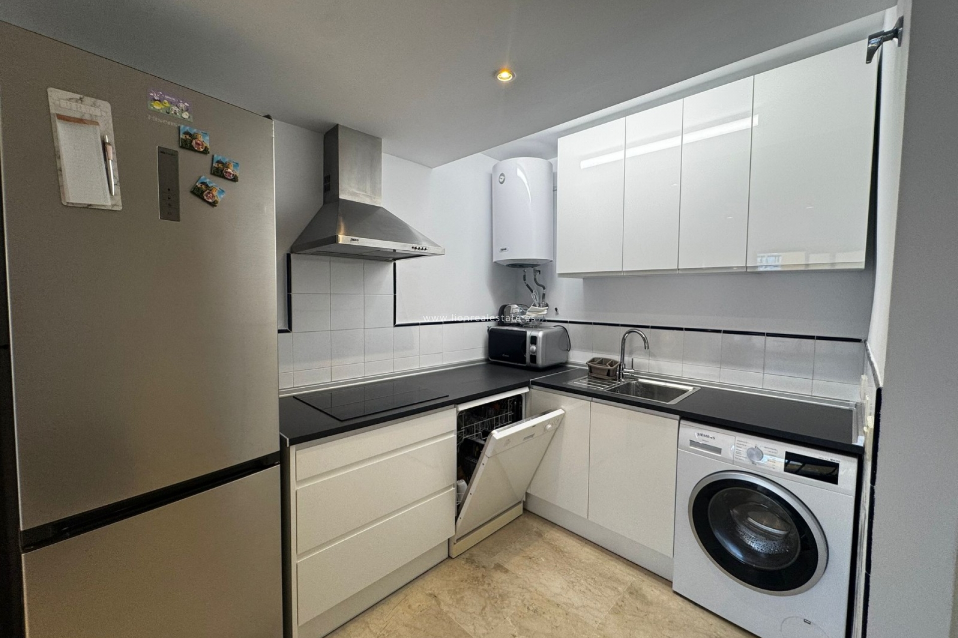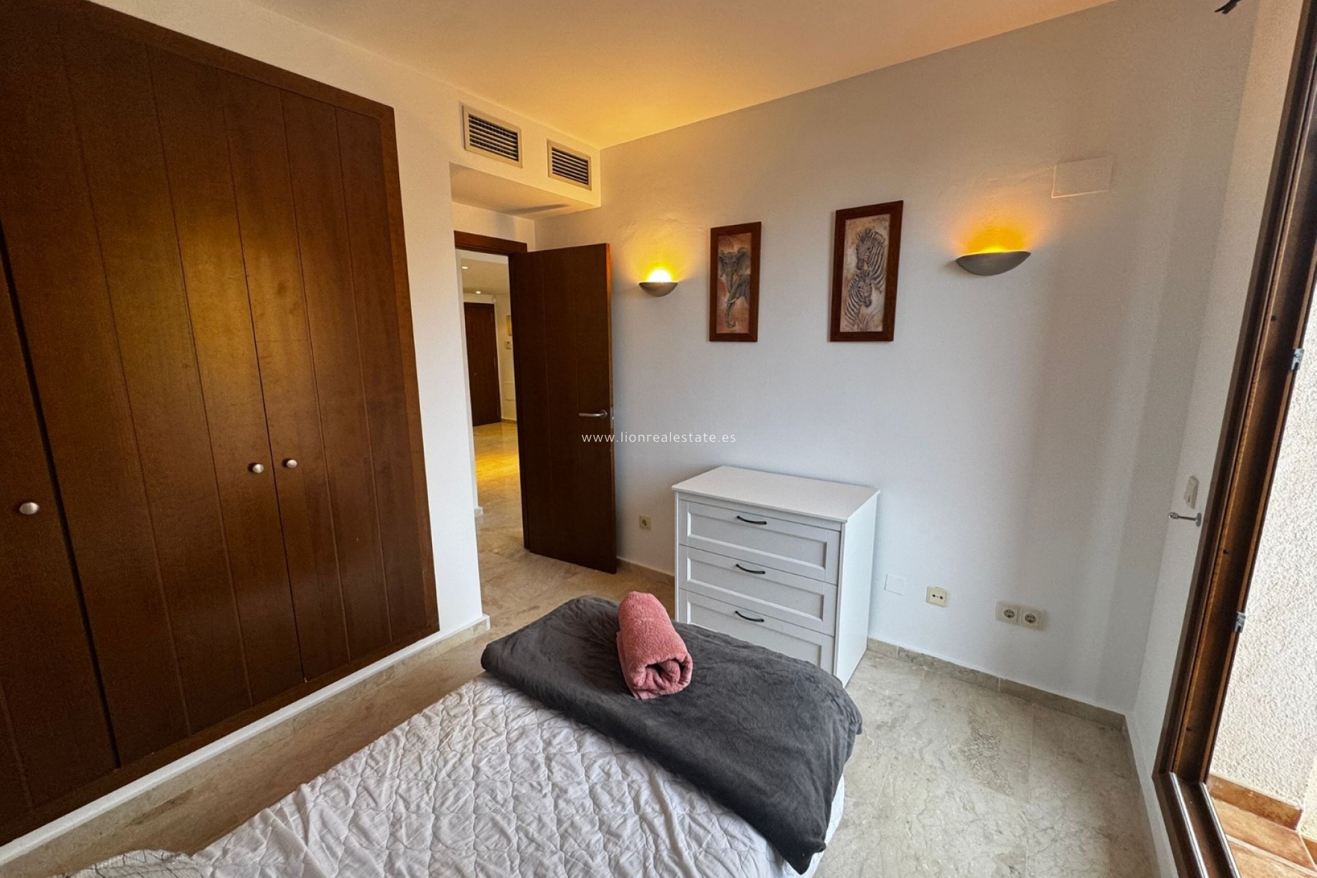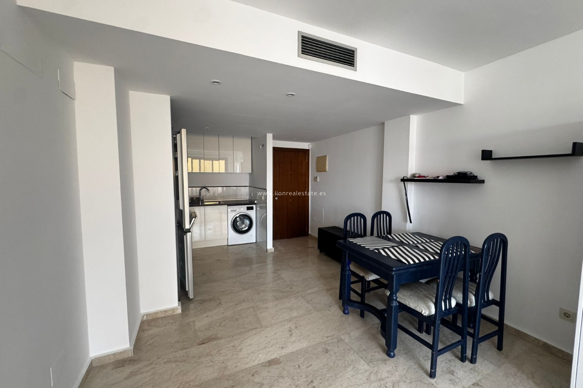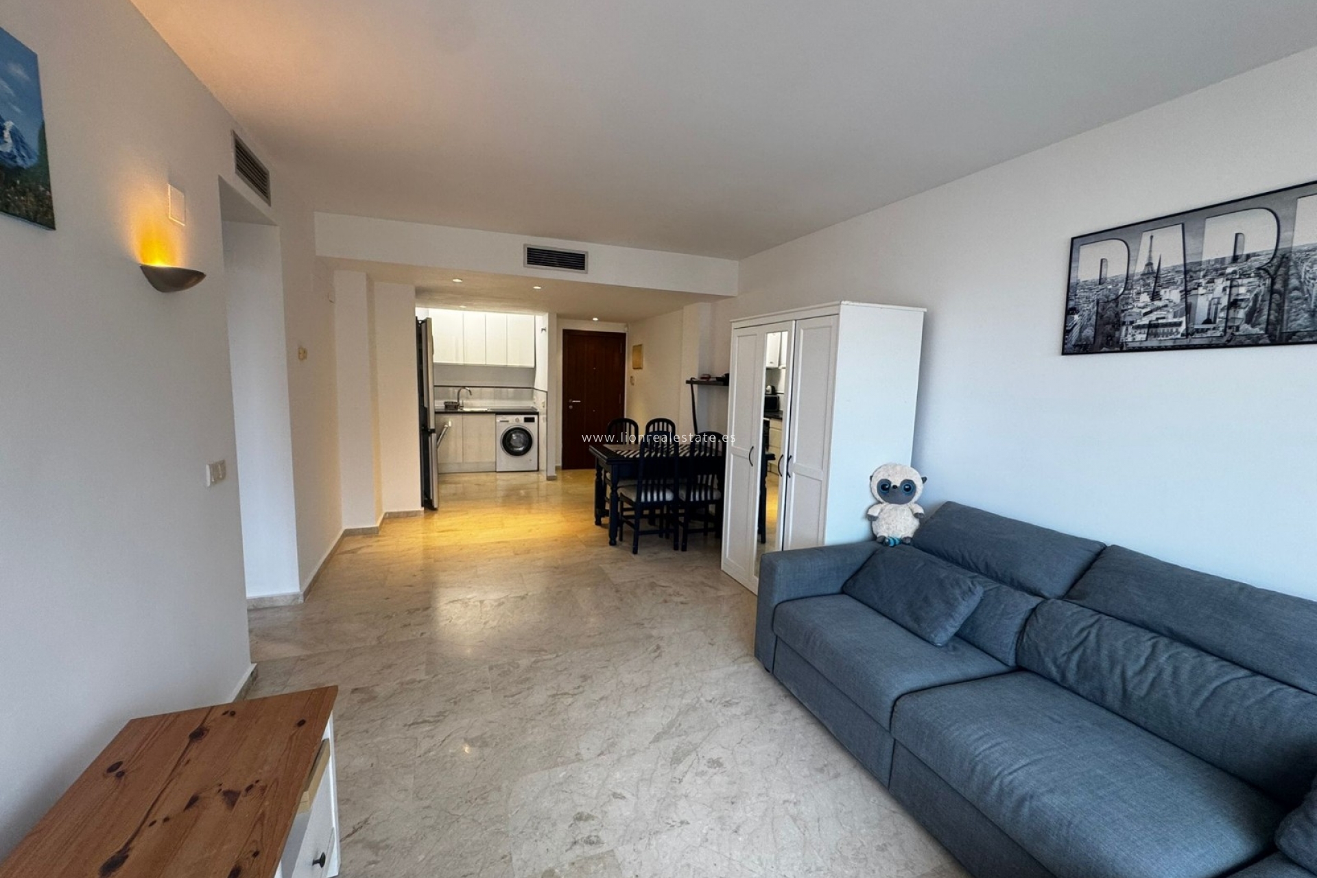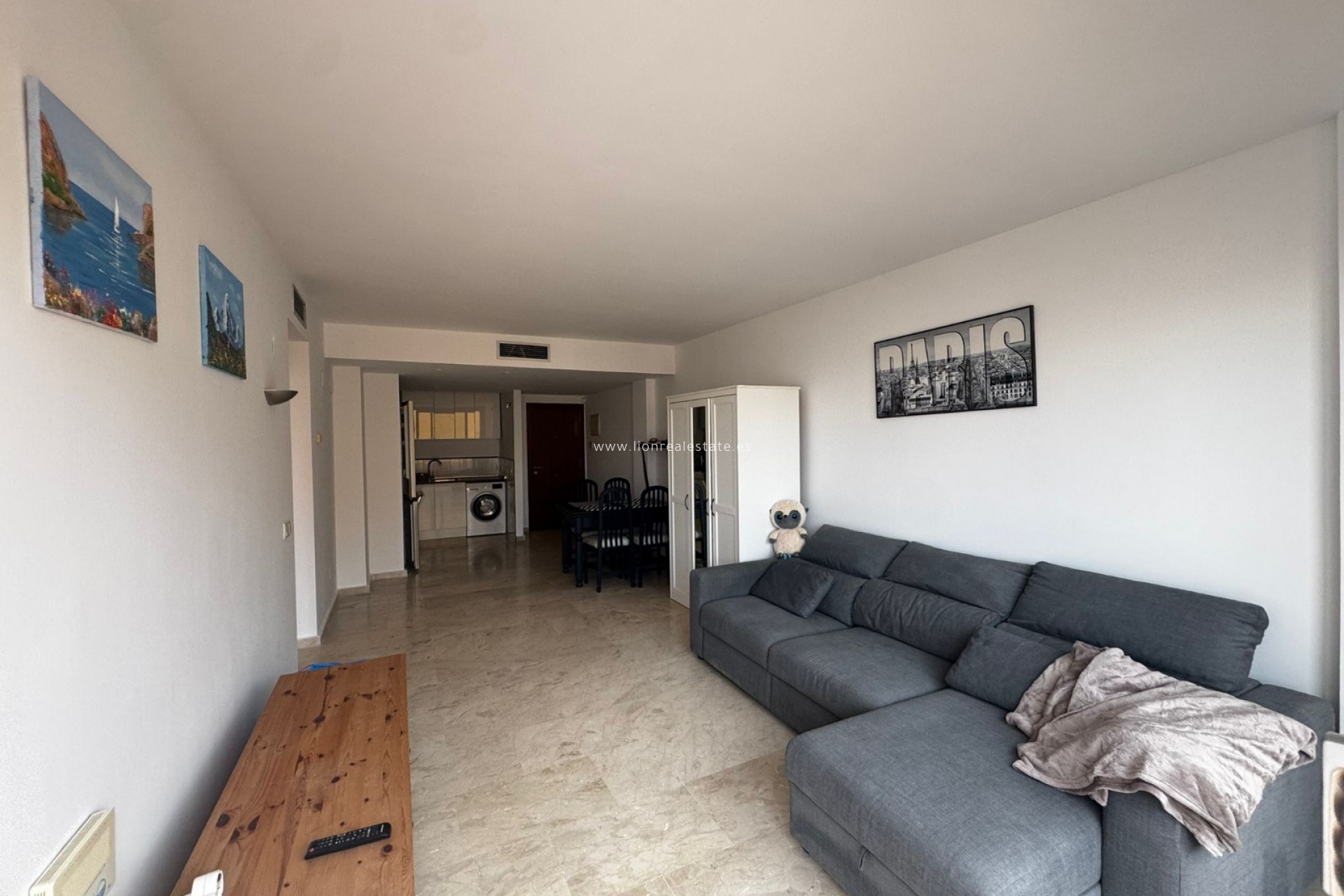 Mieszkanie jest w pełni umeblowane i wyposażone we wszystkie niezbędne urządzenia AGD (zmywarka, pralka, piekarnik, lodówka, klimatyzacja itd.). Przestronny salon z jadalnią prowadzi na balkon z widokiem na tropikalny teren osiedla z basenami i palmami, a także bocznym widokiem na morze. Idealne miejsce na poranną kawę lub wieczorny relaks. W cenie najmu zawarte jest miejsce parkingowe w garażu podziemnym. W budynku jest winda.