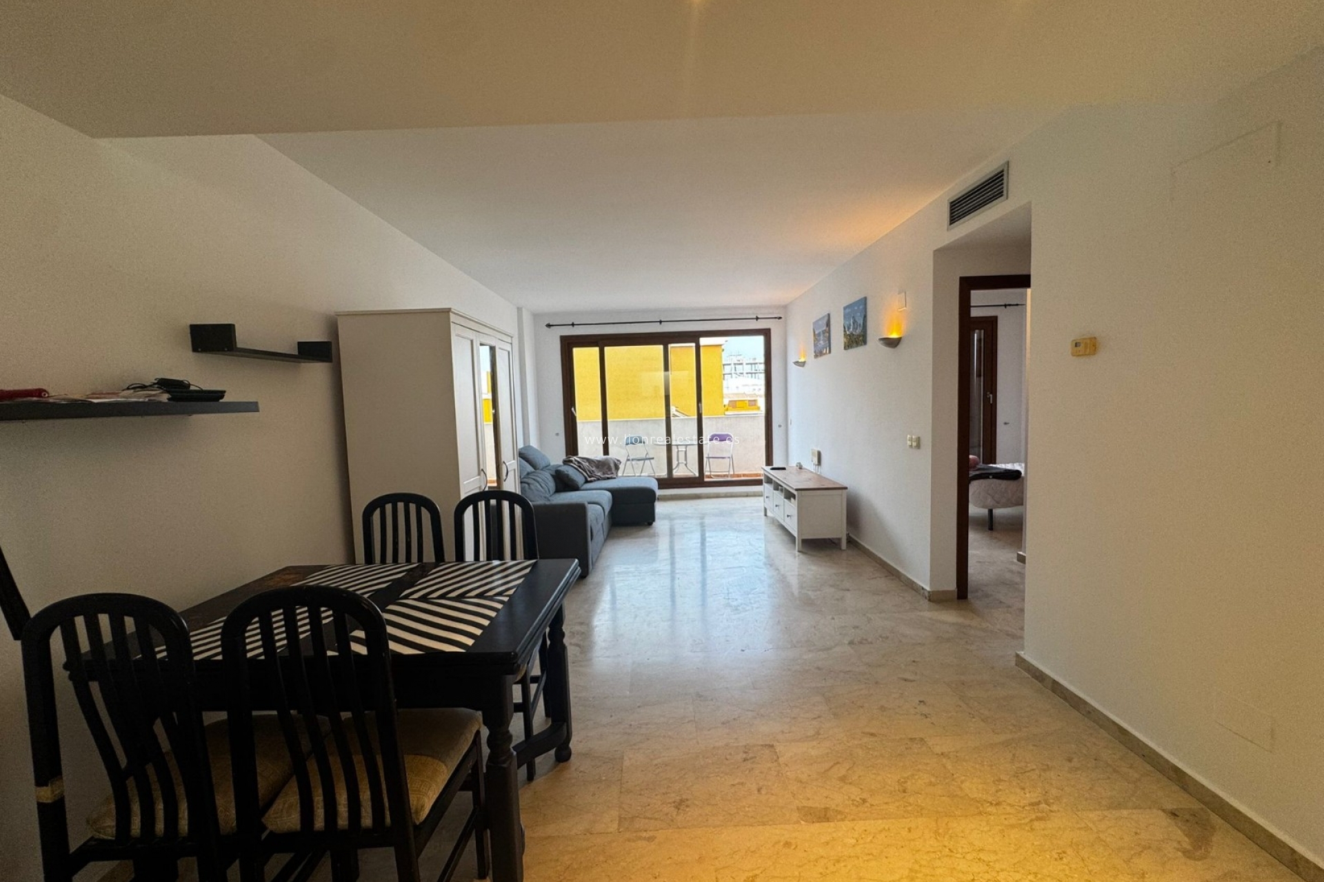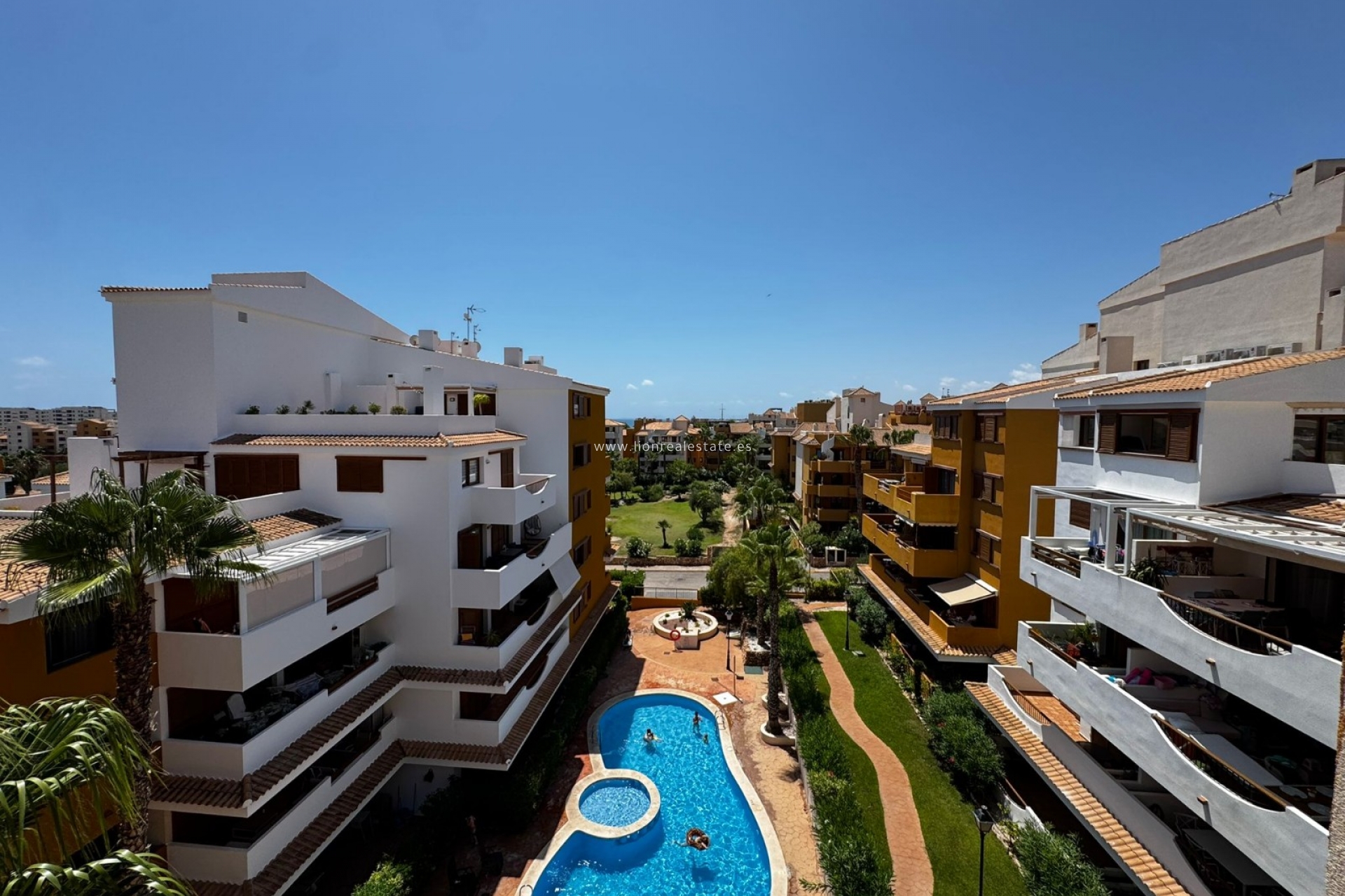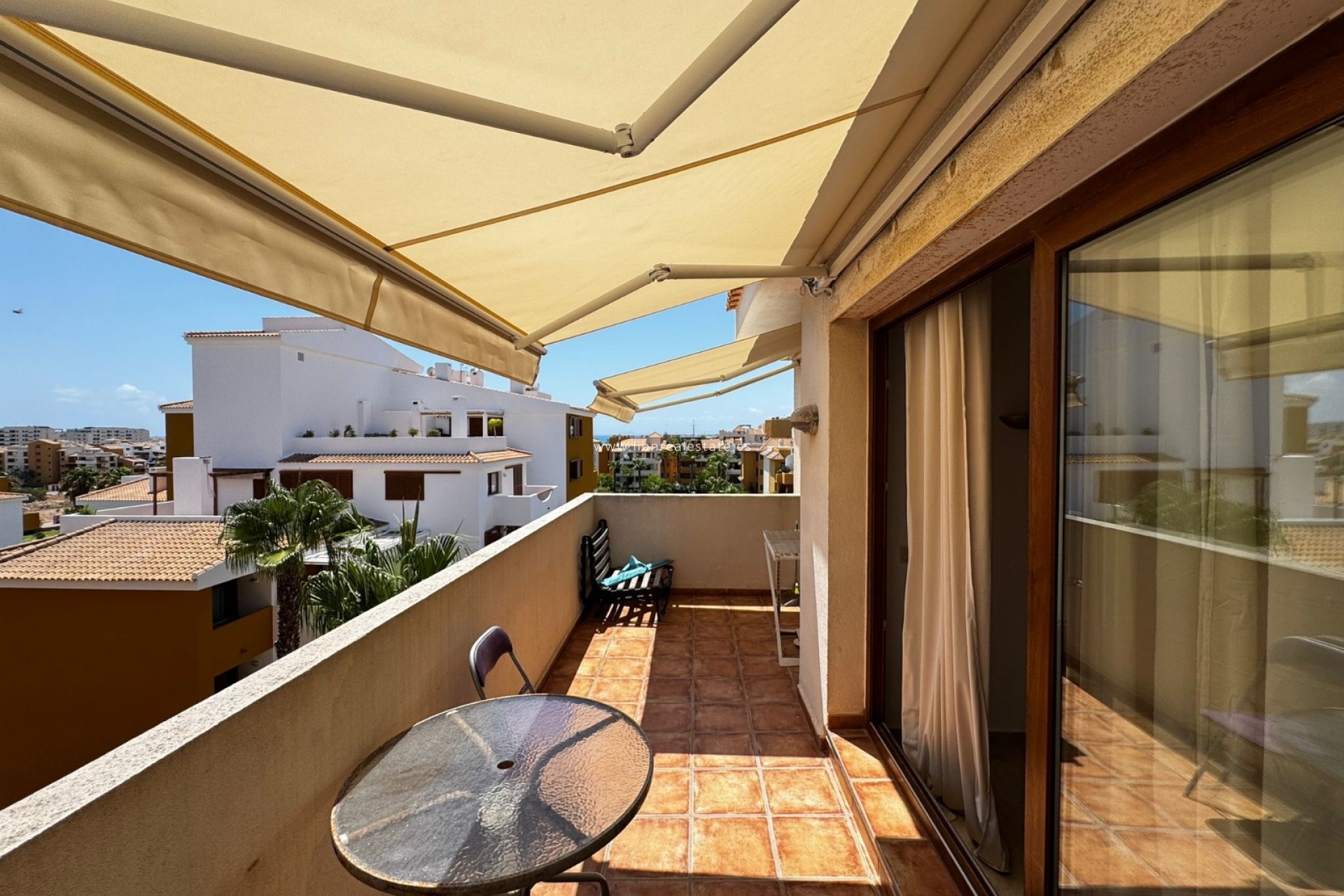 Do wynajęcia jasne i przytulne mieszkanie z 2 sypialniami i 2 łazienkami, położone na 4. piętrze prestiżowego kompleksu mieszkalnego La Entrada w Punta Prima — jednej z najbardziej zielonych i zadbanych dzielnic południowego wybrzeża Costa Blanca, zaledwie 300 metrów od morza.