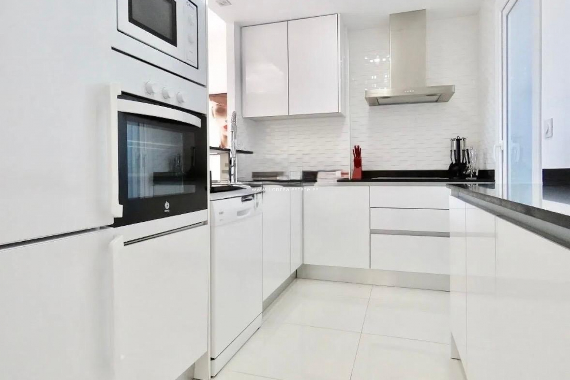 Mieszkanie ma powierzchnię 80 m². Wnętrze zostało starannie zaprojektowane: taras, wbudowane szafy, dostęp dla osób o ograniczonej mobilności oraz w pełni umeblowana kuchnia z nowym sprzętem AGD.