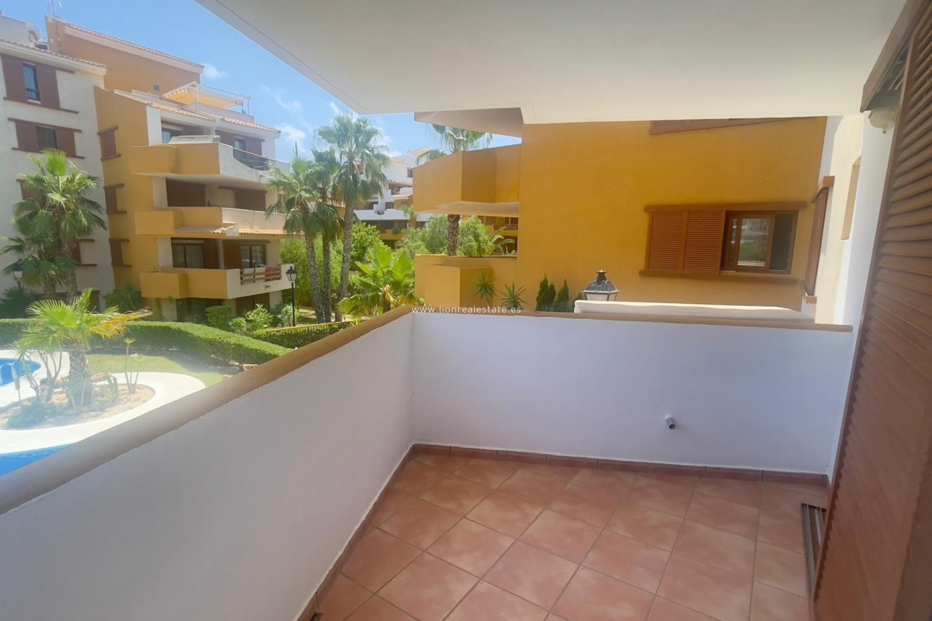 A cozy two-bedroom apartment for rent in the Park Recoleta complex in Punta Prima — just a few minutes' walk from the sea. The apartment is located on the ground floor with a spacious terrace and direct views of the pool, surrounded by greenery and a well-maintained communal area. It’s a perfect option for a quiet family holiday close to the beach and all necessary amenities.