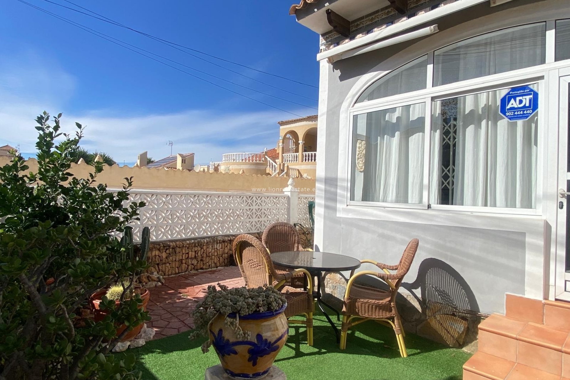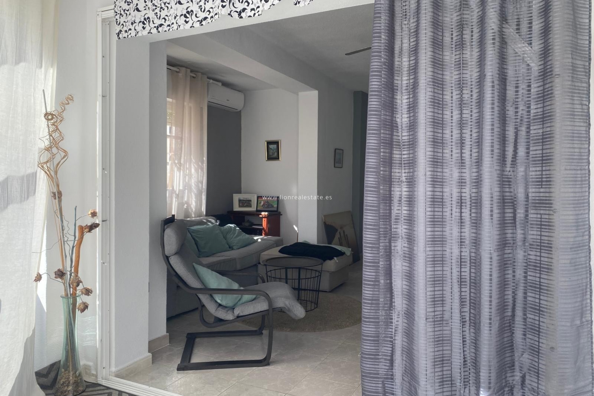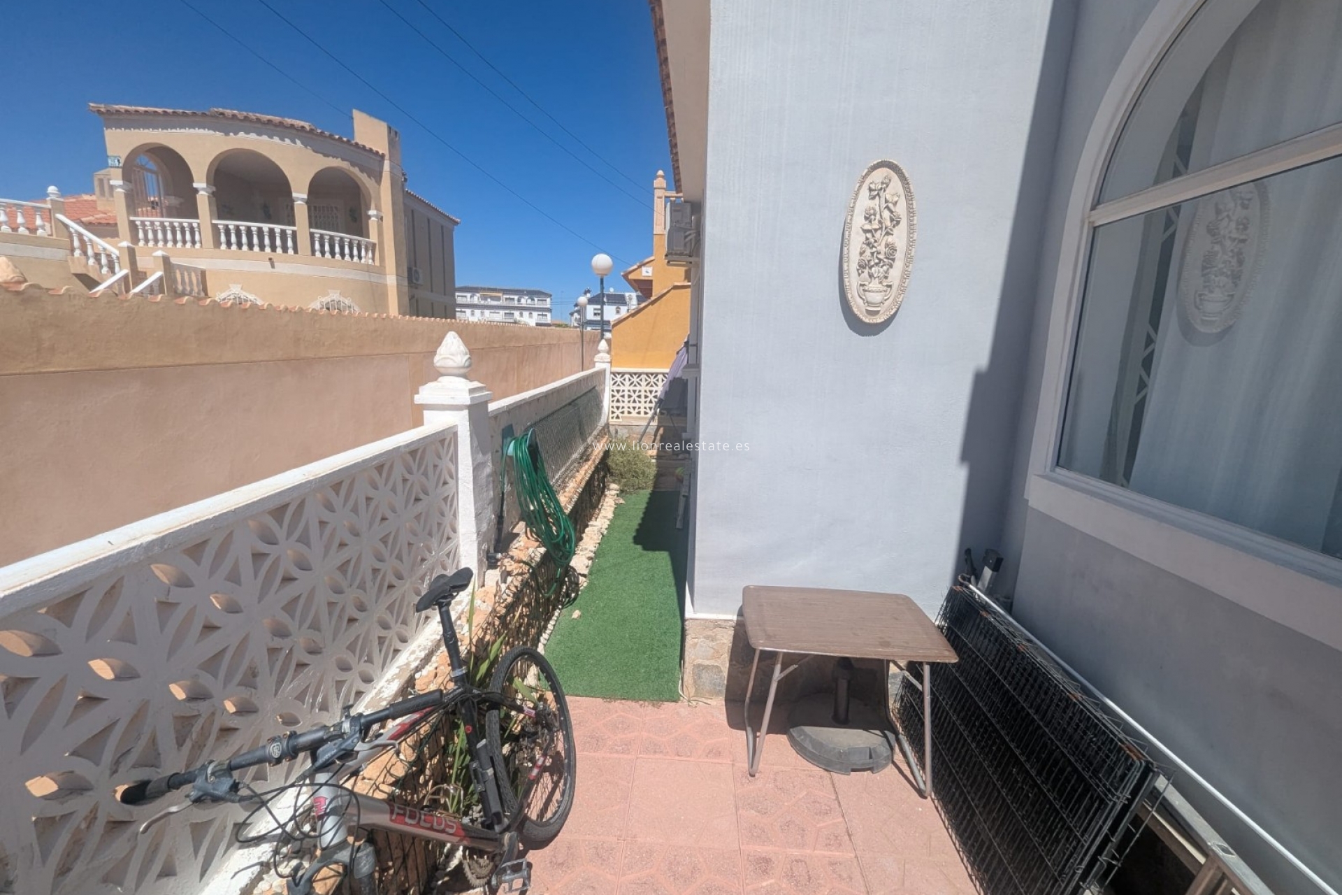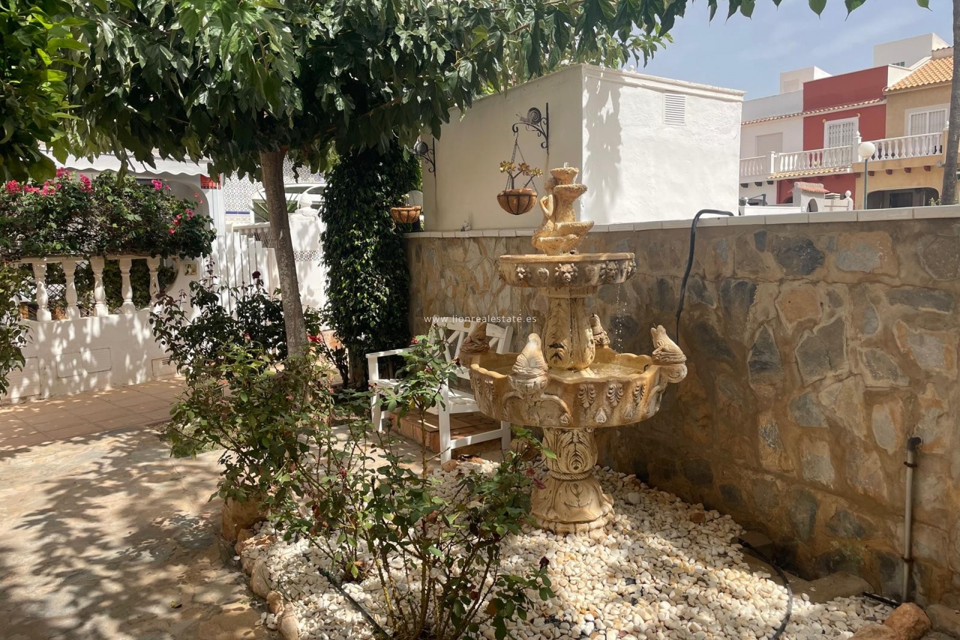 A cozy two-story corner townhouse with two bedrooms, one full bathroom, and a separate toilet is available for short-term rent. It is located in the residential area of Las Chismosas (Orihuela Costa, Alicante province). The house is semi-detached, with neighbors only on the right side, offering more privacy and tranquility. It is part of a quiet residential complex with a communal pool and green areas, ideal for family vacations.