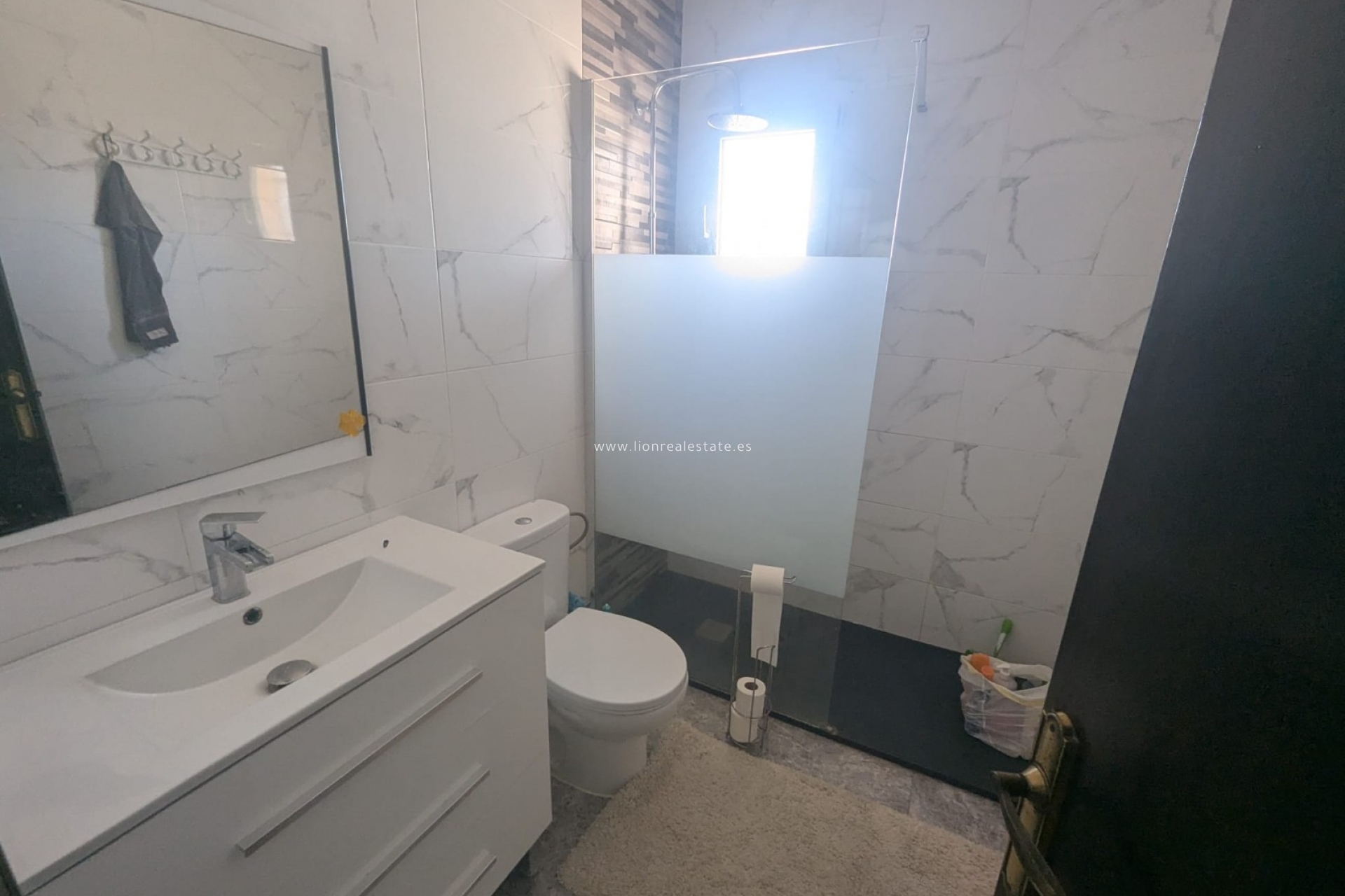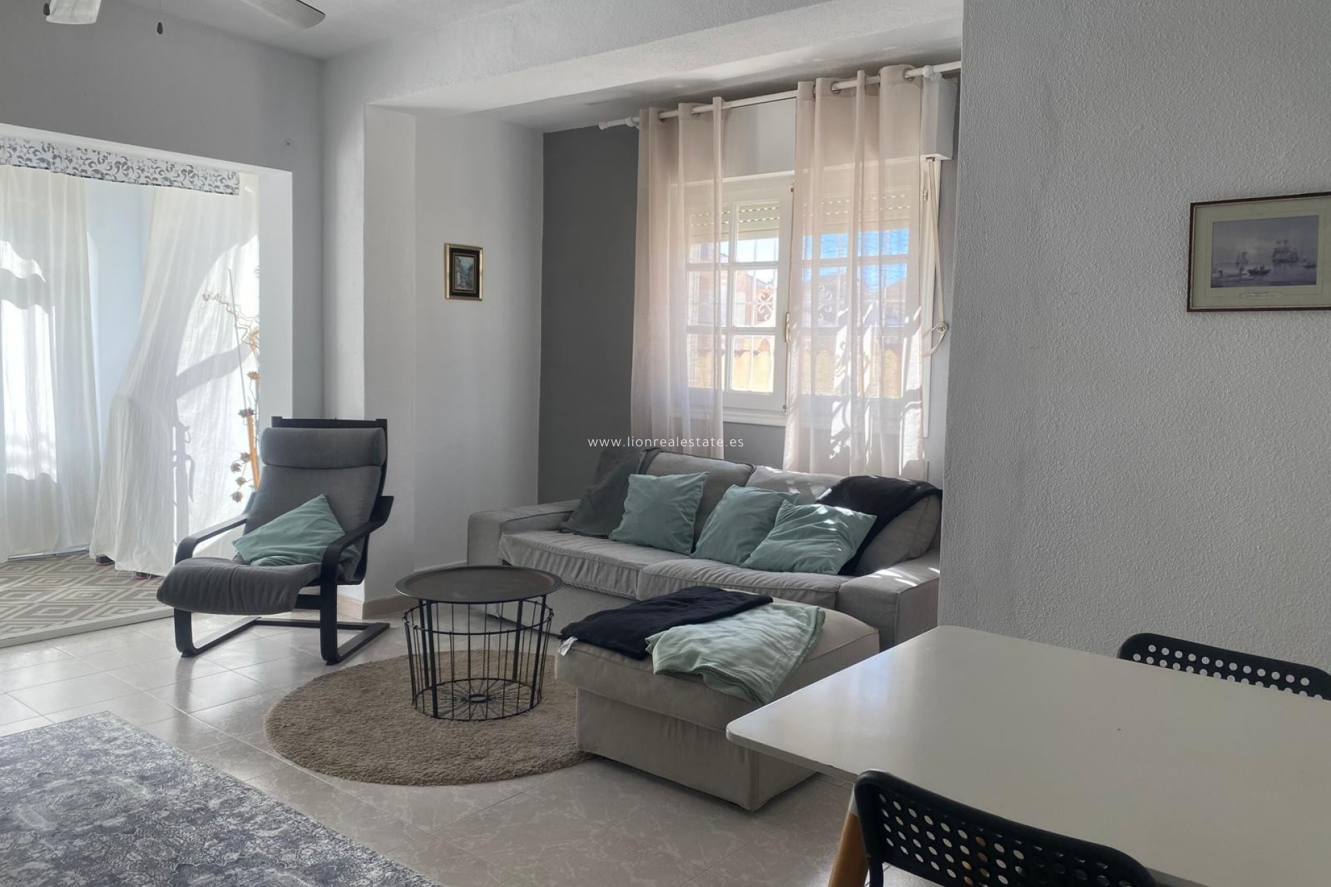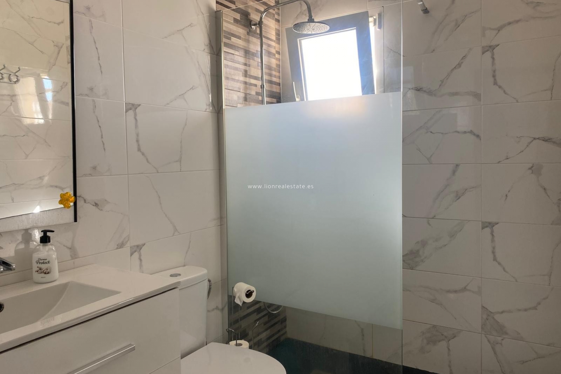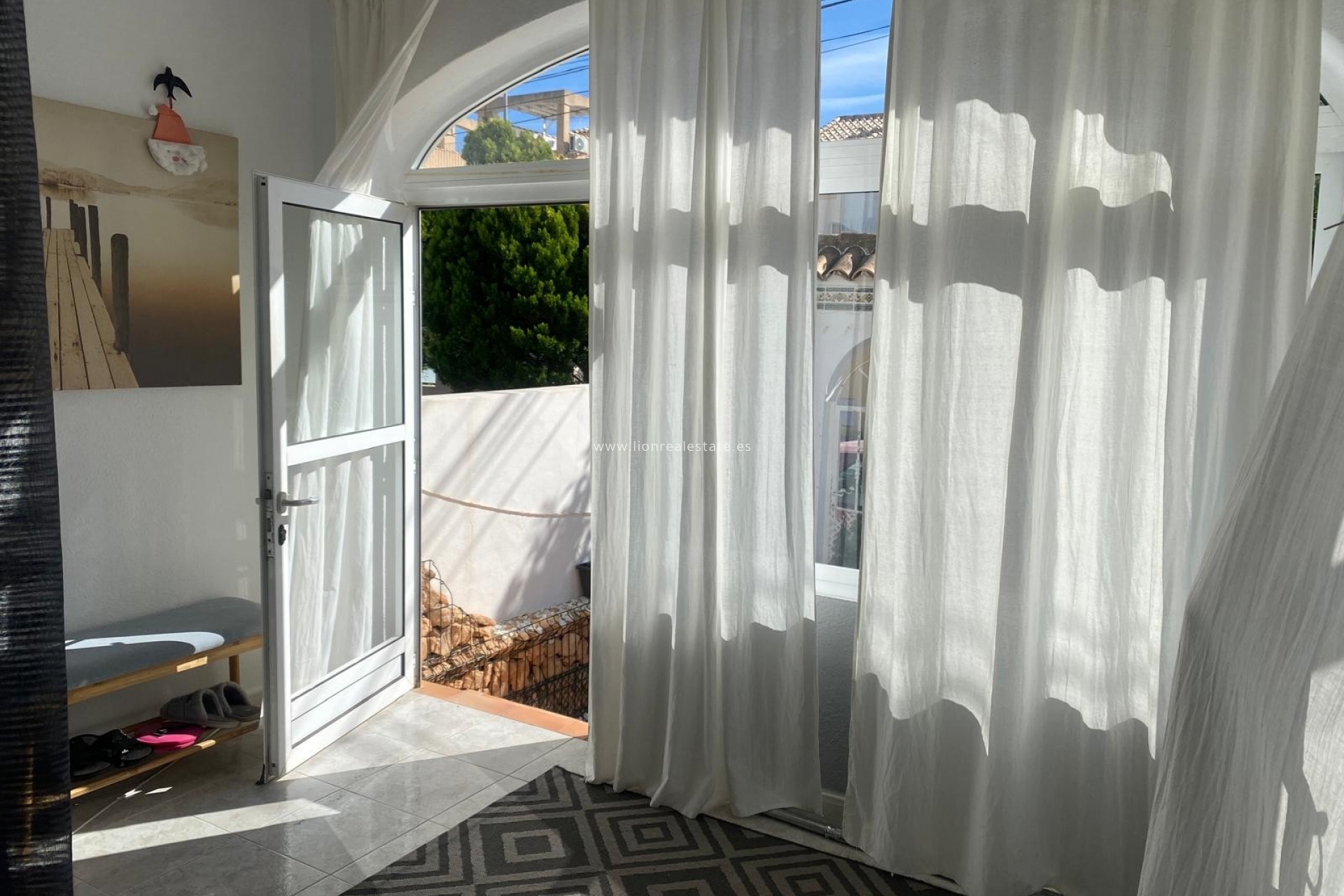 A cozy two-story corner townhouse with two bedrooms, one full bathroom, and a separate toilet is available for short-term rent. It is located in the residential area of Las Chismosas (Orihuela Costa, Alicante province). The house is semi-detached, with neighbors only on the right side, offering more privacy and tranquility. It is part of a quiet residential complex with a communal pool and green areas, ideal for family vacations.