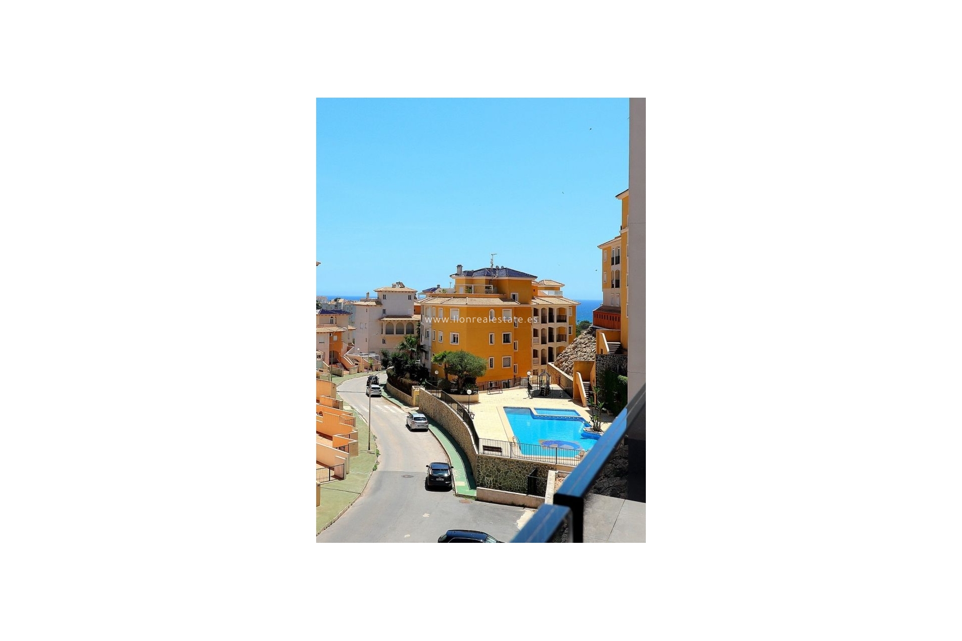 A cozy three-bedroom apartment is offered for sale in a gated complex in Campoamor, available from April. The apartment is located on the ground floor and features a private garden with grass, creating a sense of privacy and comfort.