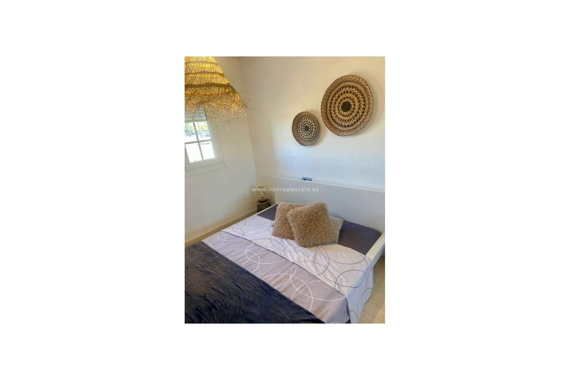 ~The interior is designed in a Mediterranean style: natural materials, a light color palette, and accents of rattan and wood create a warm and inviting atmosphere. The space is full of natural light, and the large windows offer views of green areas and the communal pool.