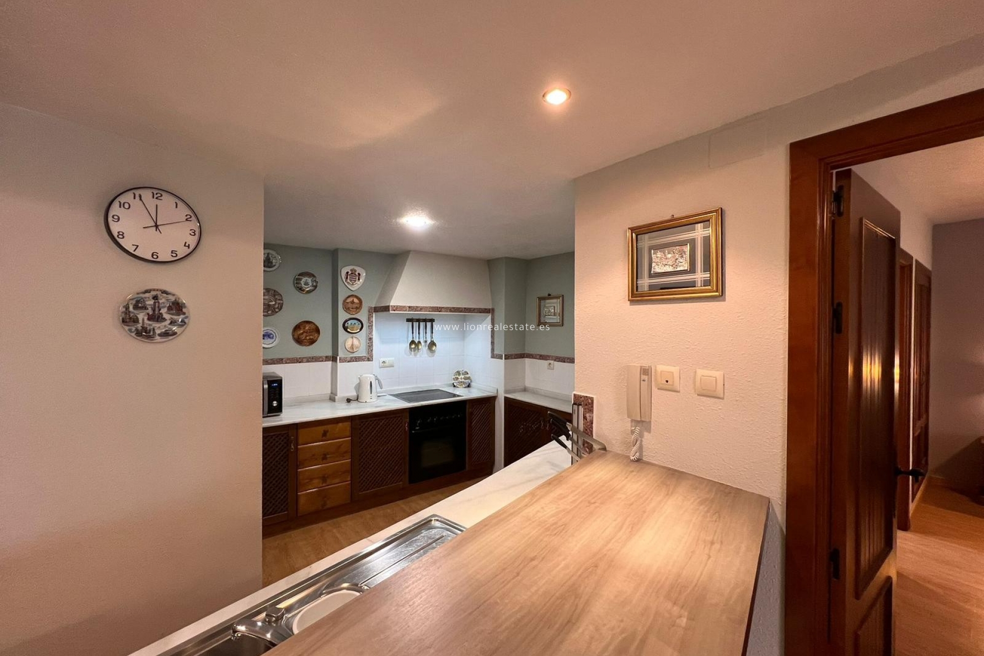 The open-plan kitchen is equipped with all necessary appliances and practical storage solutions, making it ideal for both daily living and entertaining guests.