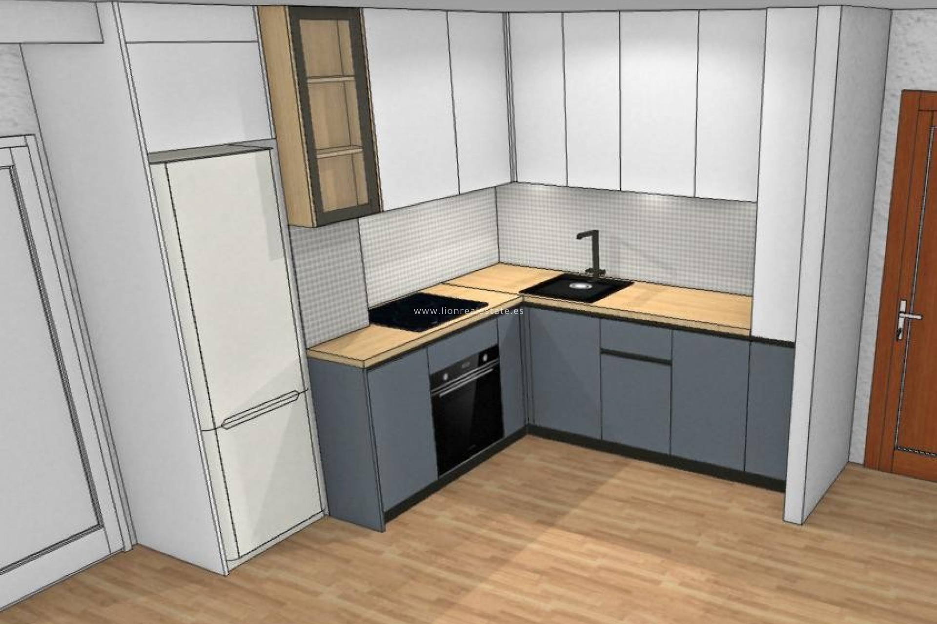 Apartment for sale in Punta Prima, fully renovated. Currently, old photos of the property are being used; these will be updated soon once the renovation is completed. At the moment, a kitchen visualization is available, showing how the apartment will look after the renovation.