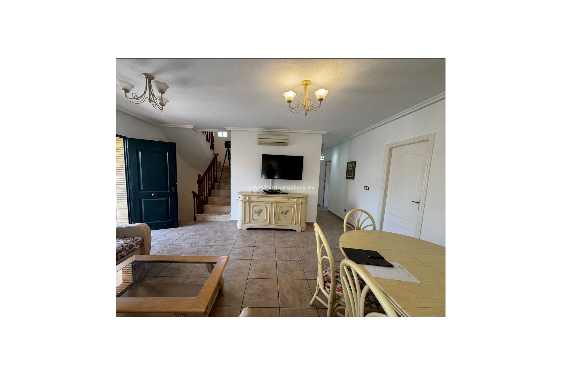 Этот очаровательный двухэтажный дом в комплексе Brisas & Golf 2 Villamartin — настоящая испанская мечта, объединяющая комфорт и приватность с живым стилем жизни на Коста‑Бланка.